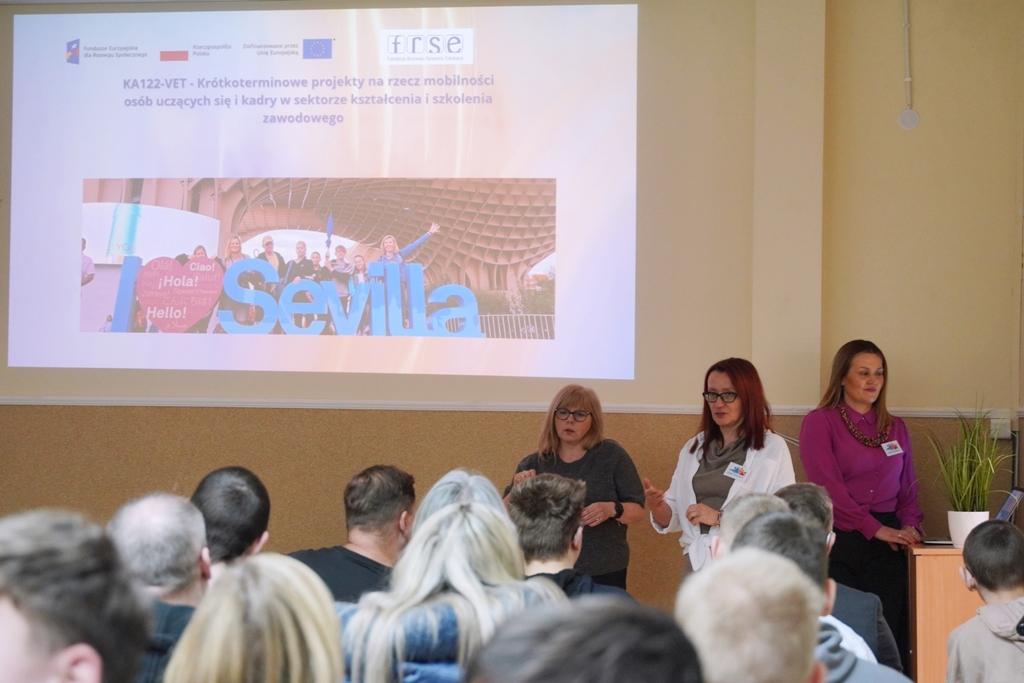 Wydarzenie stanowiło doskonałą okazję do zaprezentowania efektów mobilności zagranicznych szerokiemu gronu odbiorców – przyszłym uczniom, ich rodzicom, nauczycielom oraz przedstawicielom lokalnej społeczności. Uczestnicy projektu przedstawili swoje doświadczenia zdobyte podczas praktyk zawodowych w Hiszpanii, opowiadając o realizowanych zadaniach, nowych umiejętnościach oraz wyzwaniach związanych z pracą w międzynarodowym środowisku.
