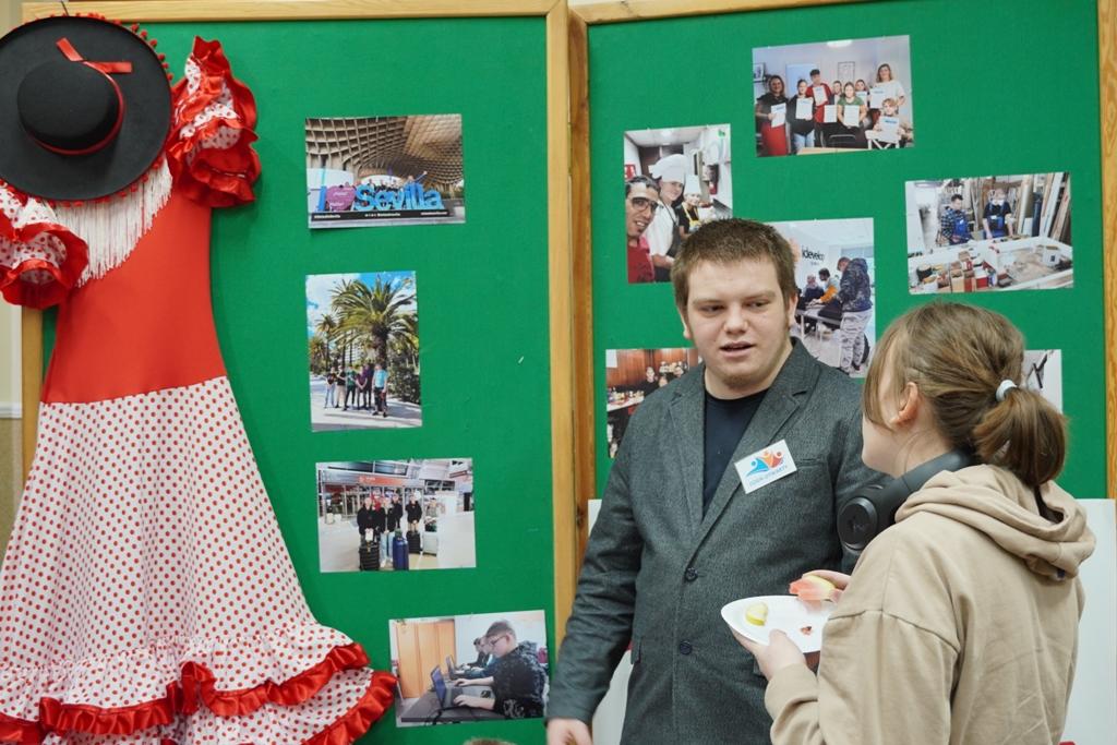Wydarzenie stanowiło doskonałą okazję do zaprezentowania efektów mobilności zagranicznych szerokiemu gronu odbiorców – przyszłym uczniom, ich rodzicom, nauczycielom oraz przedstawicielom lokalnej społeczności. Uczestnicy projektu przedstawili swoje doświadczenia zdobyte podczas praktyk zawodowych w Hiszpanii, opowiadając o realizowanych zadaniach, nowych umiejętnościach oraz wyzwaniach związanych z pracą w międzynarodowym środowisku.