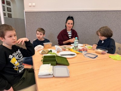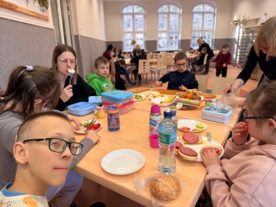 Pierwszy dzień wiosny spędziliśmy zdrowo i wesoło. Najpierw przygotowaliśmy wspólne, zdrowe śniadanie, a następnie bawiliśmy się w zgadywanie smaków w zabawie „Zgadnij, co jesz”. Na koniec uczestniczyliśmy w grach i zabawach na świeżym powietrzu.