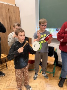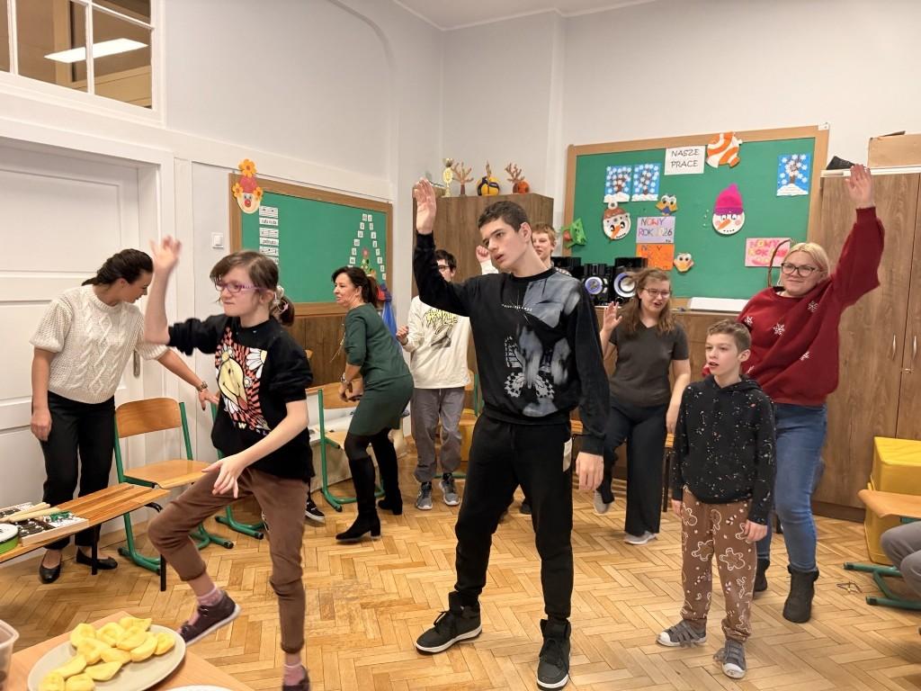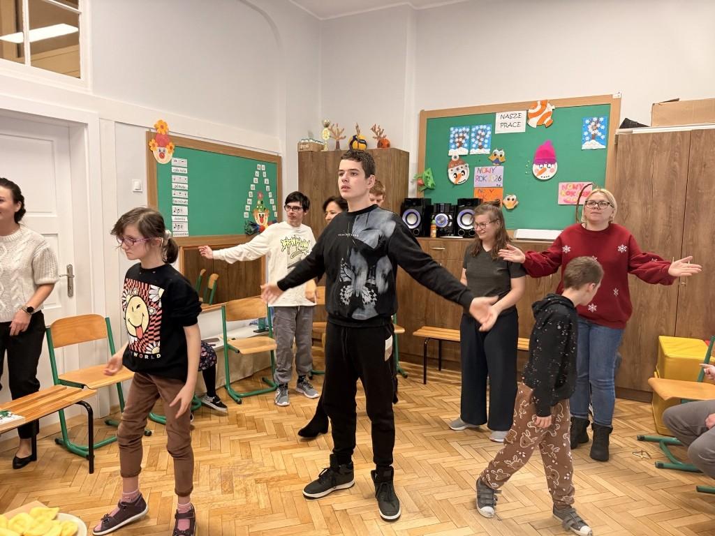 W naszej szkole odbyło się radosne kolędowanie, które wprowadziło wszystkich w wyjątkowy nastrój. Uczniowie z zaangażowaniem śpiewali znane i lubiane kolędy, a także poruszali się w ich rytm, łącząc muzykę z tańcem i ekspresją ruchową.