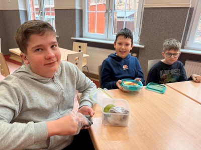 Mróz nadal nie odpuszcza, więc ciepłe drugie śniadanie jak najbardziej wskazane. Klasa II ZW przygotowała pyszny budyń waniliowy na mleku sojowym z dodatkiem borówek i banana.