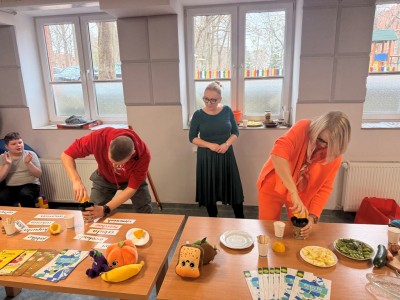 Pierwszy dzień wiosny spędziliśmy zdrowo i wesoło. Najpierw przygotowaliśmy wspólne, zdrowe śniadanie, a następnie bawiliśmy się w zgadywanie smaków w zabawie „Zgadnij, co jesz”. Na koniec uczestniczyliśmy w grach i zabawach na świeżym powietrzu.